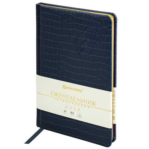 Еженедельник датированный Brauberg Comodo темно-синий, А5, 64 листа, под кожу, 2024