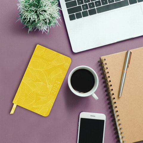Еженедельник датированный Brauberg Foliage желтый, А6, 64 листа, под кожу, 2024