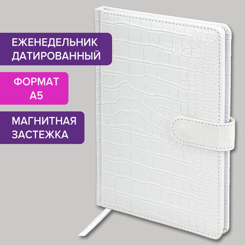 Еженедельник датированный Brauberg Party белый, А5, 64 листа, под кожу, 2024