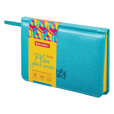 Еженедельник датированный Brauberg Rainbow бирюзовый, А6, 64 листа, под кожу, 2024
