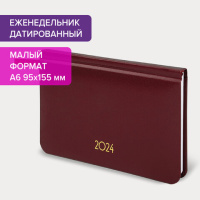 Еженедельник датированный Brauberg Select бордовый, А6, 64 листа, под кожу, 2024
