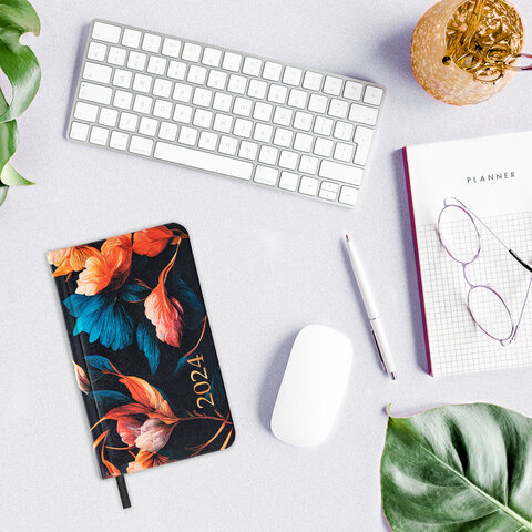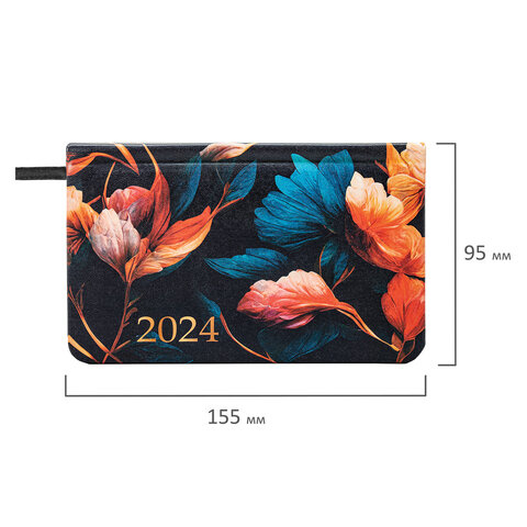 Еженедельник датированный Brauberg Vista Flowers, А6, 64 листа, под кожу, 2024