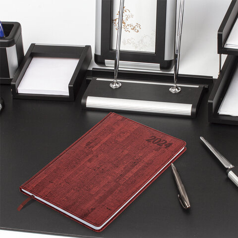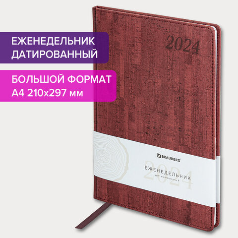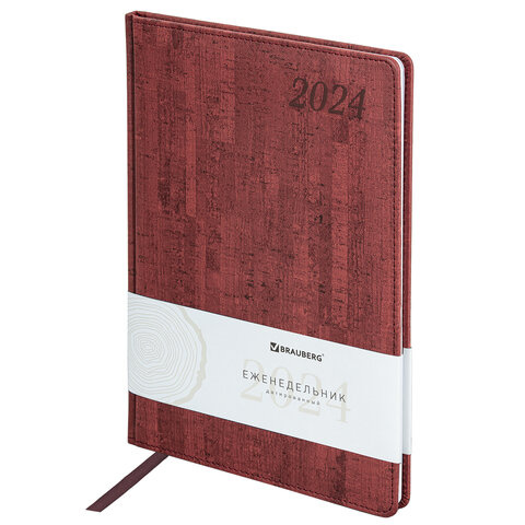 Еженедельник датированный Brauberg Wood бордовый, А4, 64 листа, под кожу, 2024