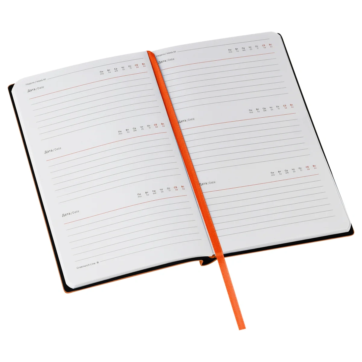 Еженедельник недатированный Greenwich Line серии 'Envelope' – ваш идеальный спутник. Роскошный и практичный, он поможет оставаться организованным и элегантным. Мягкая и прочная обложка из экокожи приятна на ощупь, а яркое оформление форзаца добавит стиля.