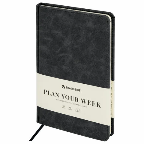 Еженедельник недатированный А5 145х215 мм BRAUBERG 'Status', под кожу, 64 л., черный, 113370
