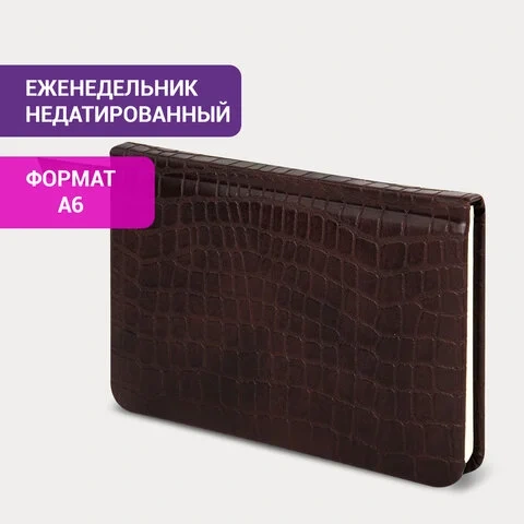 Еженедельник недатированный Brauberg Alligator коричневый, А6, 72л, искусственная кожа