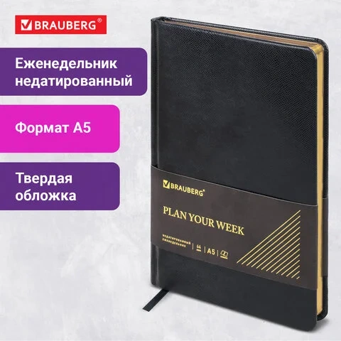 Еженедельник недатированный Brauberg Iguana черный, А5, 64 листа, под кожу