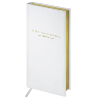 Еженедельник недатированный формата А6 из коллекции «Dallas». Обложка изготовлена из высококачественного кожзаменителя с поролоновой прослойкой, цвет обложки - белый. Внутренний блок состоит из 64 листов офсетной бумаги плотностью 70 г/м2, печать блока в 2 краски, справочный материал. Удобная закладка-ляссе.