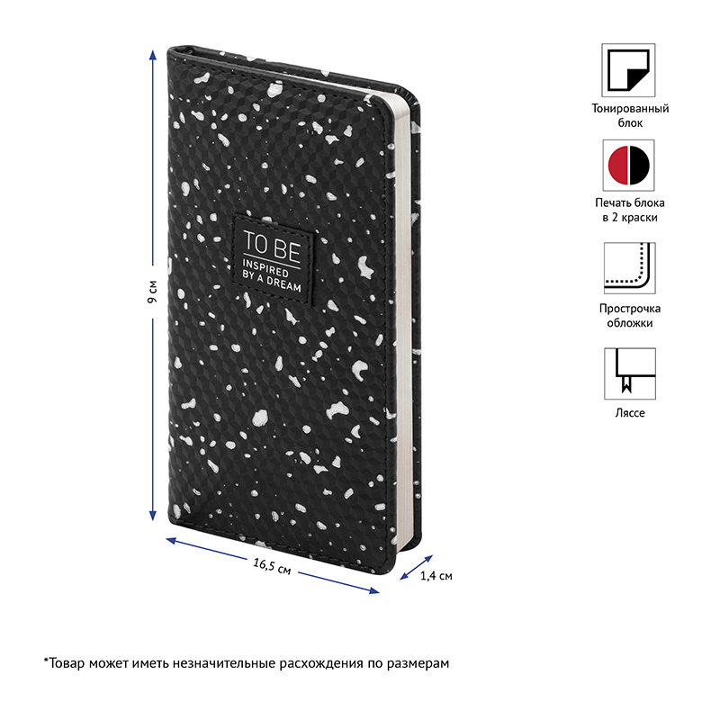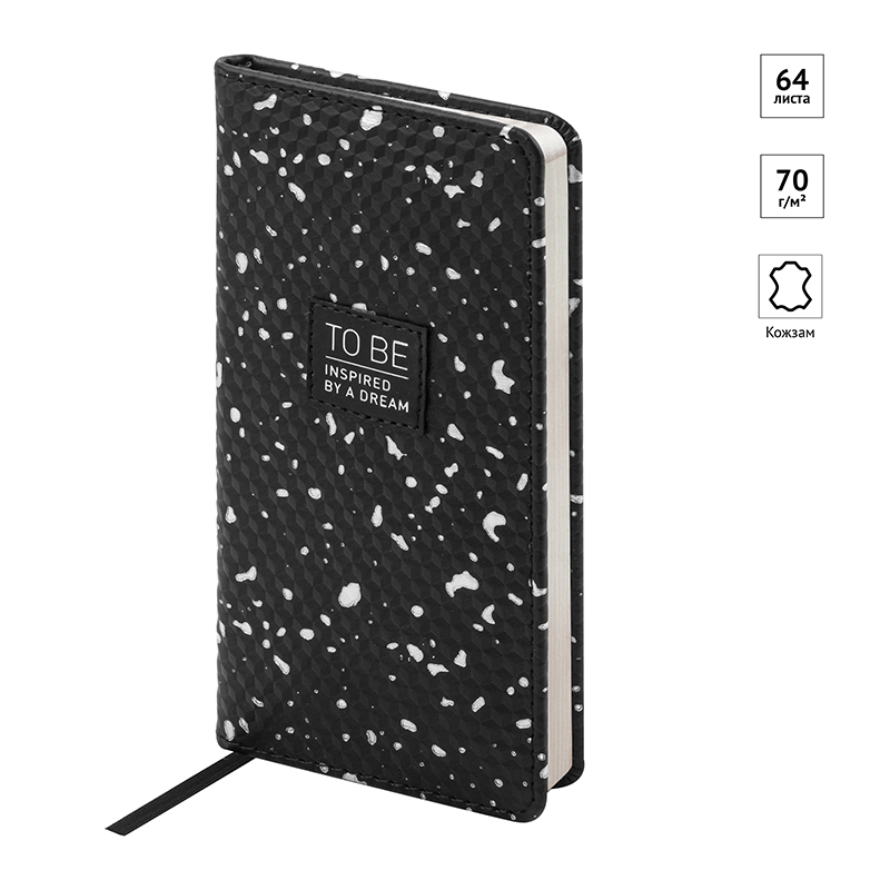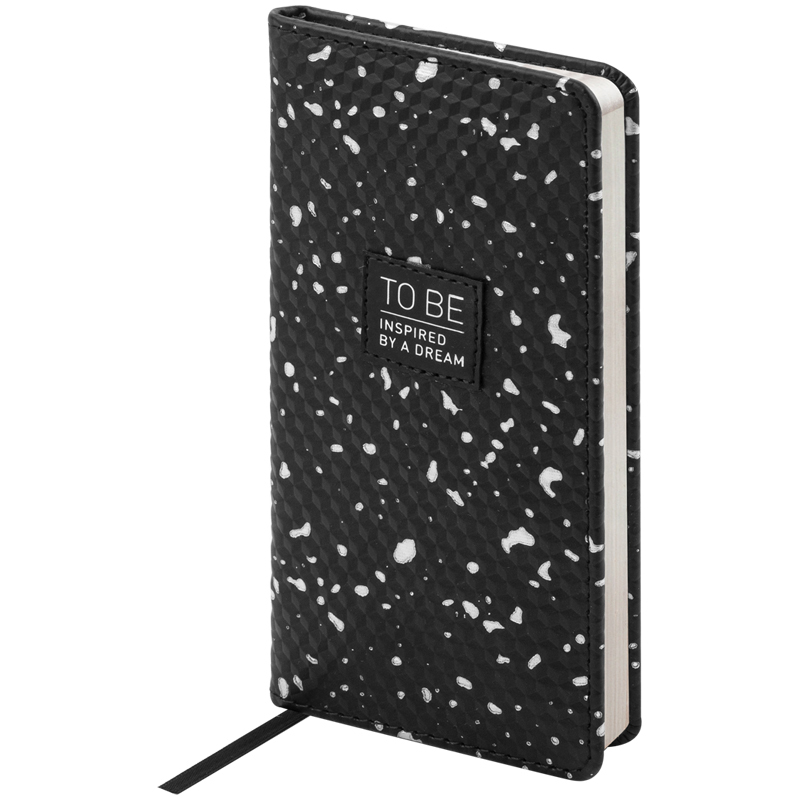 Еженедельник недатированный формата А7 из новой коллекции «Fortune». Твердая обложка с поролоновой прослойкой изготовлена из высококачественного кожзаменителя с объемной фактурой и металлизированным рисунком. Основной цвет обложки - черный. Фольгированный срез. Внутренний блок состоит из 64 листов офсетной бумаги плотностью 70 г/м2, печать блока в 2 краски. Удобная закладка-ляссе и перфорированные уголки.