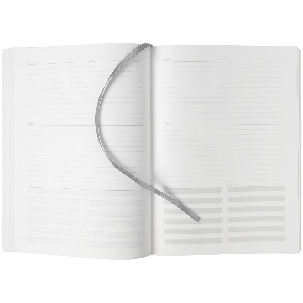 Еженедельник с твердой обложкой, выполнен из материала Soft Touch, серый СС, дополнен ляссе в цвет обложки.Блок 202:Кол-во страниц — 144;Бумага — тонированная, плотность 70 г/м;Форзац и нахзац — тонированные. Цвет: серый. Размер изделия: 20,5х27 см. Материал: покрытие софт-тач. Возможные виды нанесения: УФ-печать; Тиснение; Лазерная гравировка; Шелкография с трансфером; Шелкография (1 цвет);