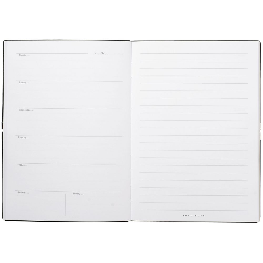 В году всего 52 недели, и на каждую надо запланировать что-нибудь интересное!Еженедельник формата А5, недатированный, 80 листов.Гибкая обложка из материала, имитирующего фактурную кожу.Закрывается на резинку, края защищены от сминания металлической накладкой. Цвет: черный. Размер изделия: 21,3х15,3 см. Материал: искусственная кожа.