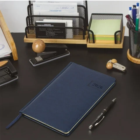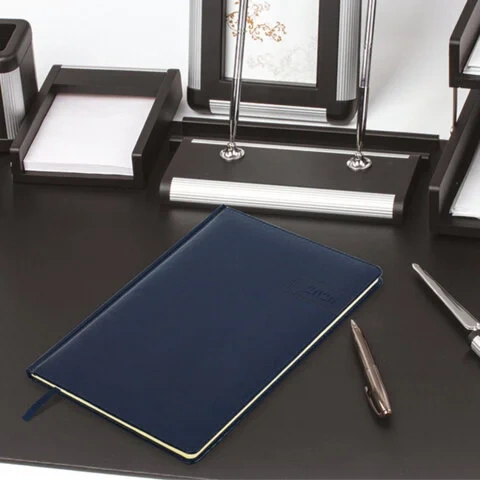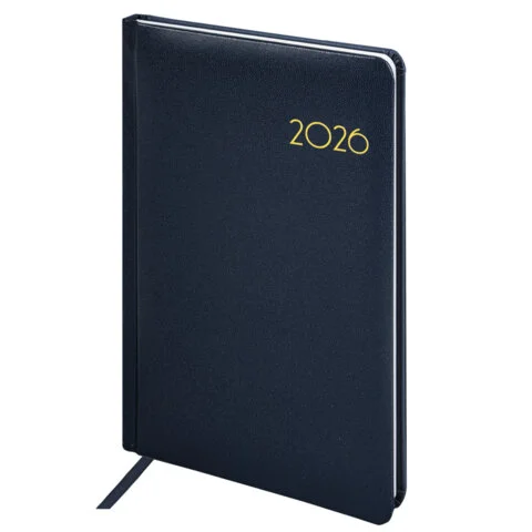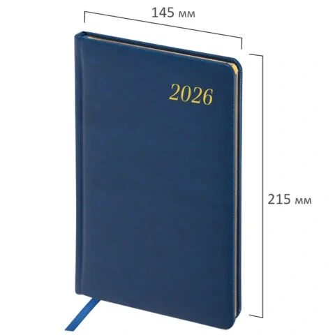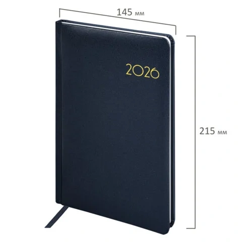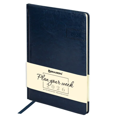 Еженедельник датированный 2026, А5, 145х215 мм, BRAUBERG 'Select', балакрон, темно-синий, 117181