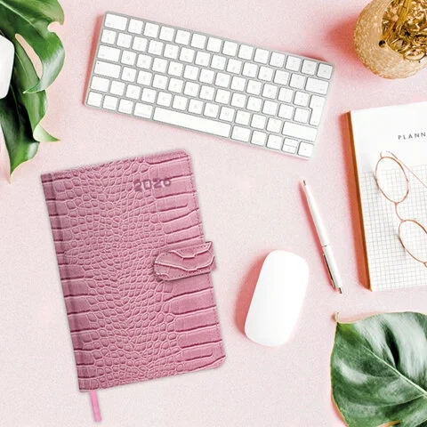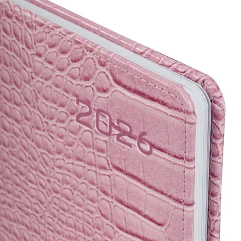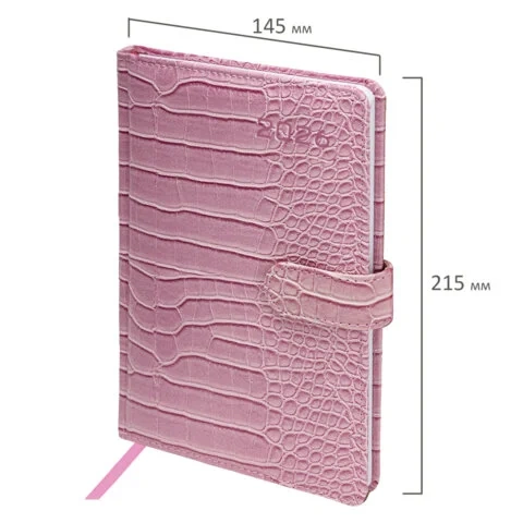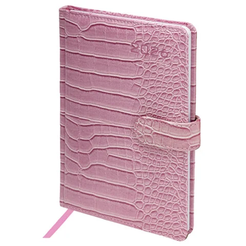 Еженедельник датированный 2026 МАЛЫЙ ФОРМАТ 105х160 мм, А6, BRAUBERG 'Imprint', тиснение, розовый, 1