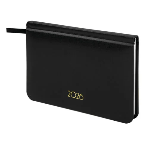 Еженедельник датированный 2026, МАЛЫЙ ФОРМАТ 95х155 мм, А6, BRAUBERG 'Select', балакрон, черный, 117