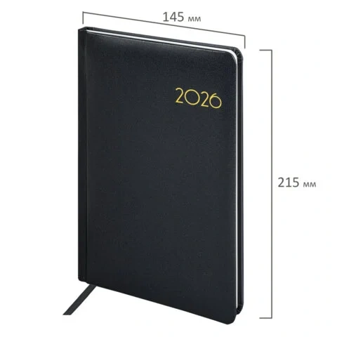 Еженедельник датированный 2026, А5, 145х215 мм, BRAUBERG 'Imperial', под кожу, черный, 117175