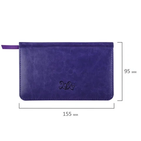 Еженедельник датированный 2026 МАЛЫЙ ФОРМАТ 95х155 мм, А6, BRAUBERG 'Foliage', под кожу, сиреневый,