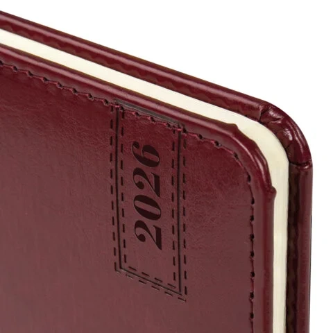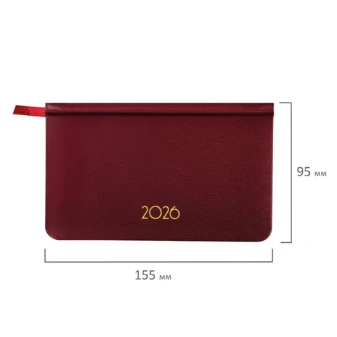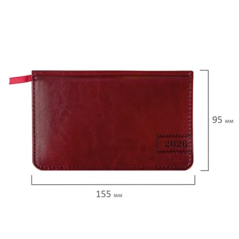 Еженедельник датированный 2026, МАЛЫЙ ФОРМАТ 95х155 мм, А6, BRAUBERG 'Imperial', под кожу, бордо, 11