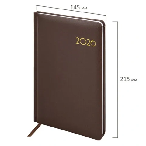 Еженедельник датированный 2026, А5, 145х215 мм, BRAUBERG 'Select', балакрон, коричневый, 117183