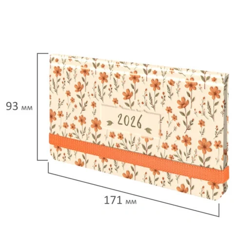 Еженедельник датированный 2026 с резинкой 171х93 мм, BRAUBERG, твердый, УФ-ЛАК, 64 л., 'Цветы', 1173