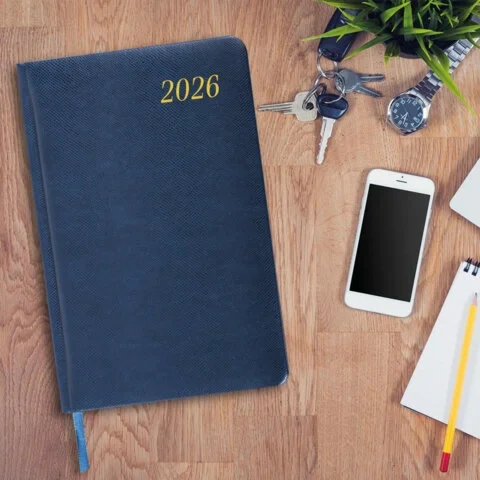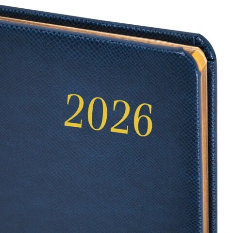 Еженедельник датированный 2026, МАЛЫЙ ФОРМАТ, 95х155 мм, А6, BRAUBERG 'Select', балакрон, темно-сини