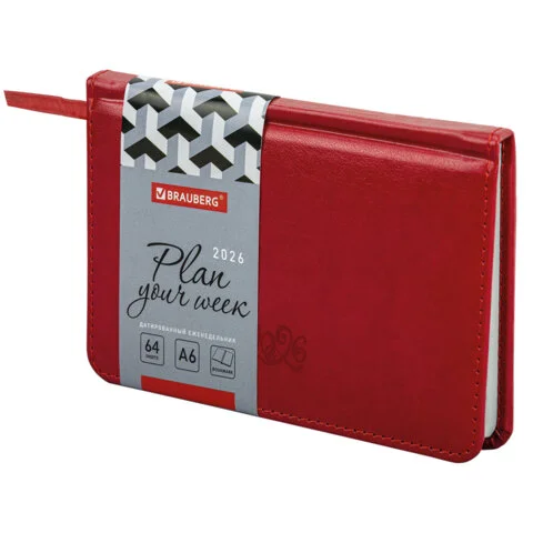 Еженедельник датированный 2026 МАЛЫЙ ФОРМАТ 105х160 мм, А6, BRAUBERG 'Unique', красный, 117206