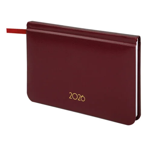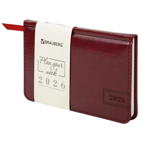 Еженедельник датированный 2026, МАЛЫЙ ФОРМАТ 95х155 мм, А6, BRAUBERG 'Select', балакрон, бордо, 1171