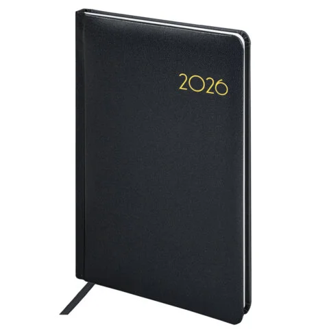Еженедельник датированный 2026, А5, 145х215 мм, BRAUBERG 'Select', балакрон, черный, 117182