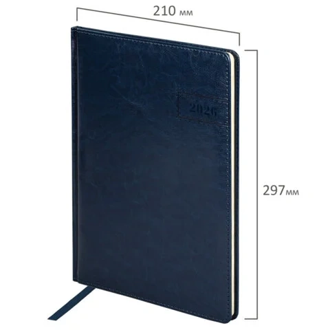 Еженедельник датированный 2026, БОЛЬШОЙ ФОРМАТ 210х297 мм, А4, BRAUBERG 'Imperial', под кожу, синий,