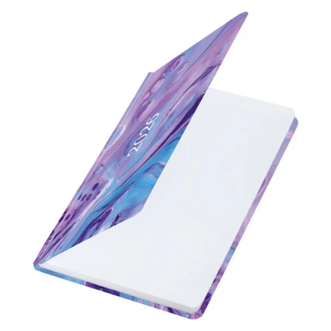 Еженедельник датированный 2026, МАЛЫЙ ФОРМАТ 95х155 мм, А6, BRAUBERG 'Rainbow', под кожу, сиреневый,