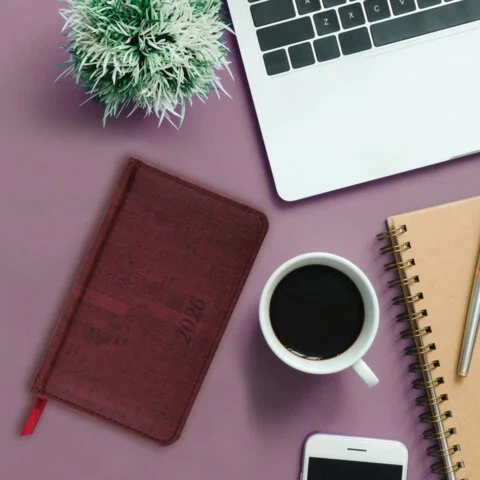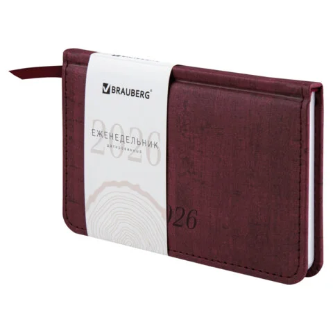 Еженедельник датированный 2026 МАЛЫЙ ФОРМАТ 95х155 мм, А6, BRAUBERG 'Wood', под кожу, бордо, 117196