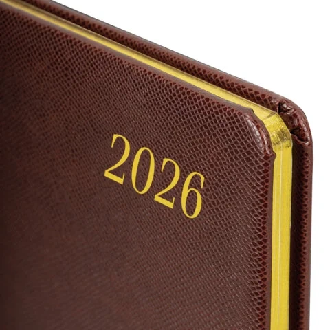 Еженедельник датированный 2026 МАЛЫЙ ФОРМАТ 105х160 мм, А6, BRAUBERG 'Blaze', фольга, коричневый, 11