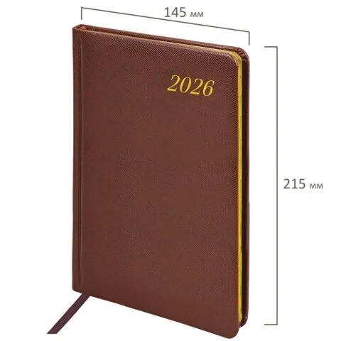 Еженедельник датированный 2026, А5, 145х215 мм, BRAUBERG 'Iguana', под кожу, коричневый, 117169