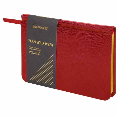 Еженедельник недатированный Brauberg Iguana красный, А6, 73 листа, под кожу