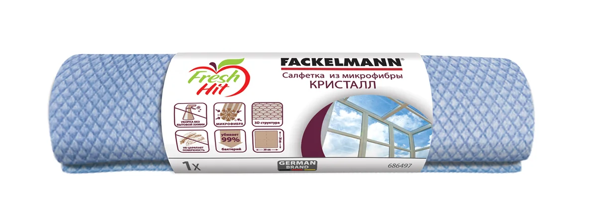 Салфетка хозяйственная Fackelmann Кристалл 30х30см, микрофибра, для стекол и экранов