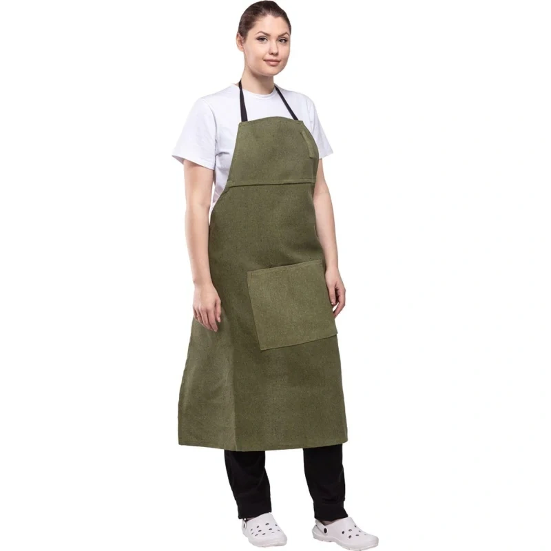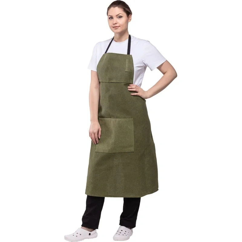 Фартук с цельнокроеным нагрудником и притачанной к боковым углам на уровне талии тесьмой для завязывания. Фартук цвета хаки предназначен для защиты при работе с грубыми материалами. Ткань — брезент (100% парусина). Плотность: 350 г/кв.м. Длина фартука: 104 см. Длина завязок: 55 см. Ширина фартука по талии, где завязки: 80 см. Ширина низа фартука: 96 см. Тип А — фартук защищает передний участок тела работника. Водоотталкивающая пропитка.