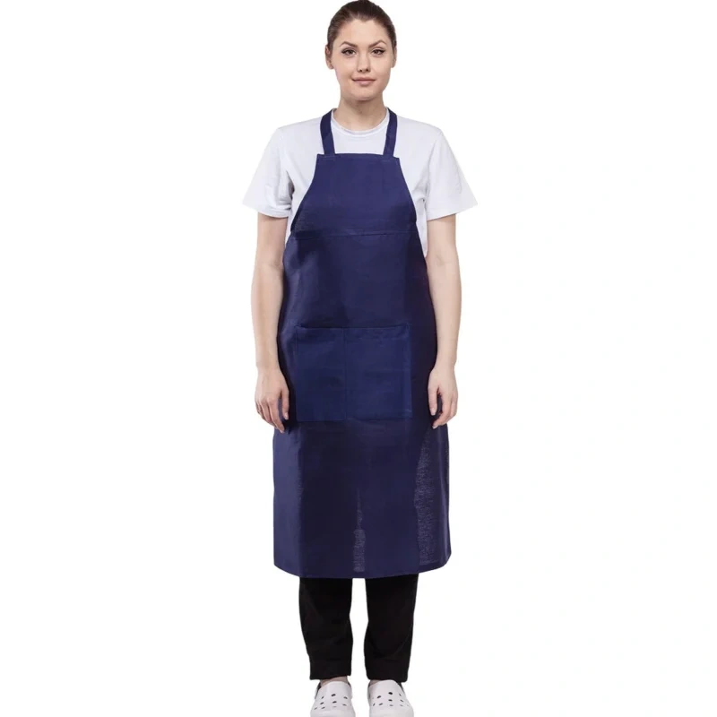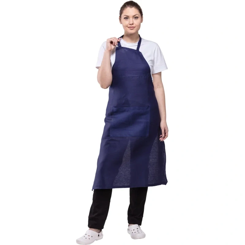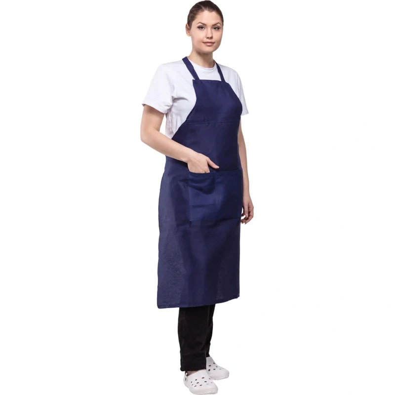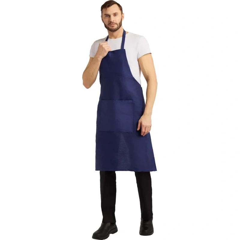 Фартук с цельнокроеным нагрудником и накладными карманом, к боковым углам на уровне талии притачана тесьма для завязывания.