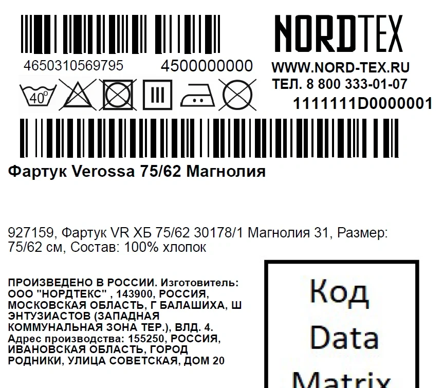 Фартук Verossa Gen Магнолия кухонный хлопчатобумажный, 75 x 62см