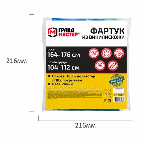 Фартук защитный из винилискожи КЩС, объем груди 104-112, рост 164-176, синий, ГРАНДМАСТЕР, 610871