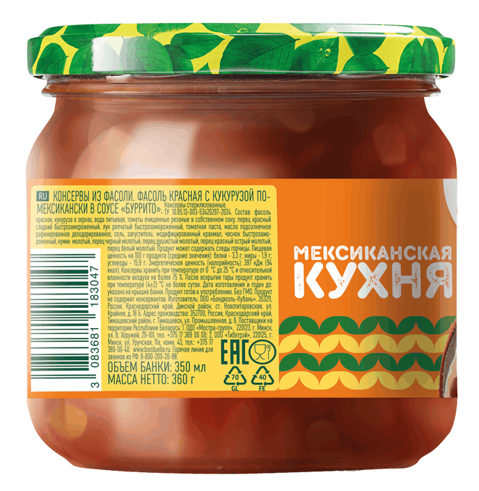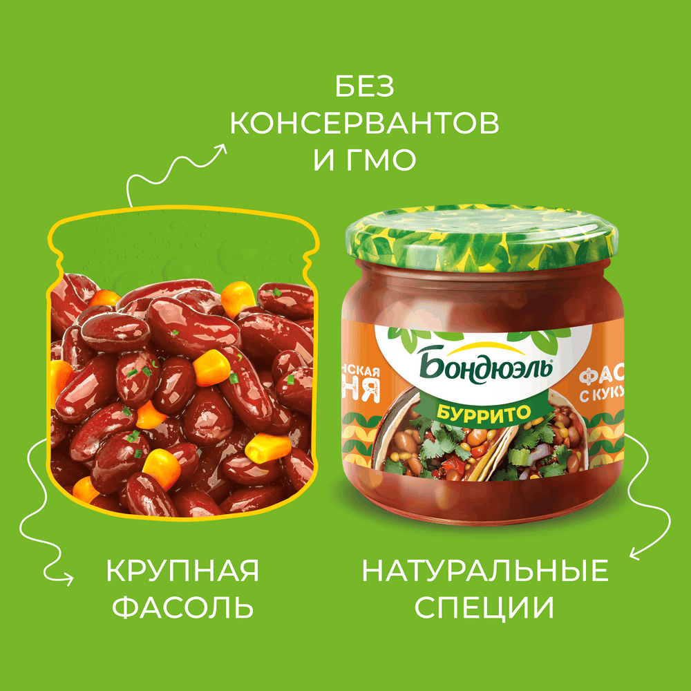 Фасоль красная Бондюэль с кукурузой буррито, 425мл