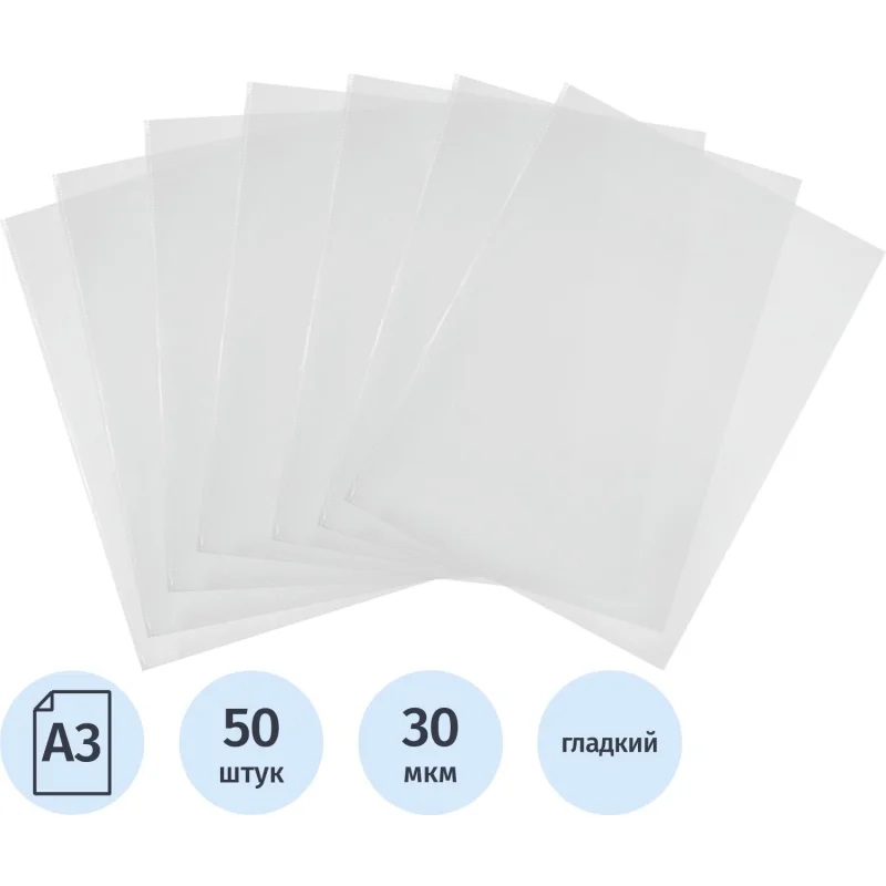 Файл-вкладыш А3 Attache 30мкм 50шт/уп, прозрачный, гладкий, без перфорации