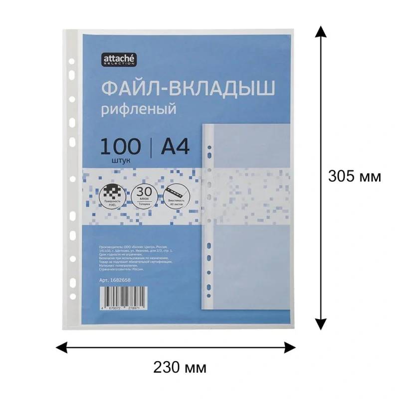 Файл-вкладыш А4, 30мкм, Attache Selection Pixel, рифленый, 100шт/уп