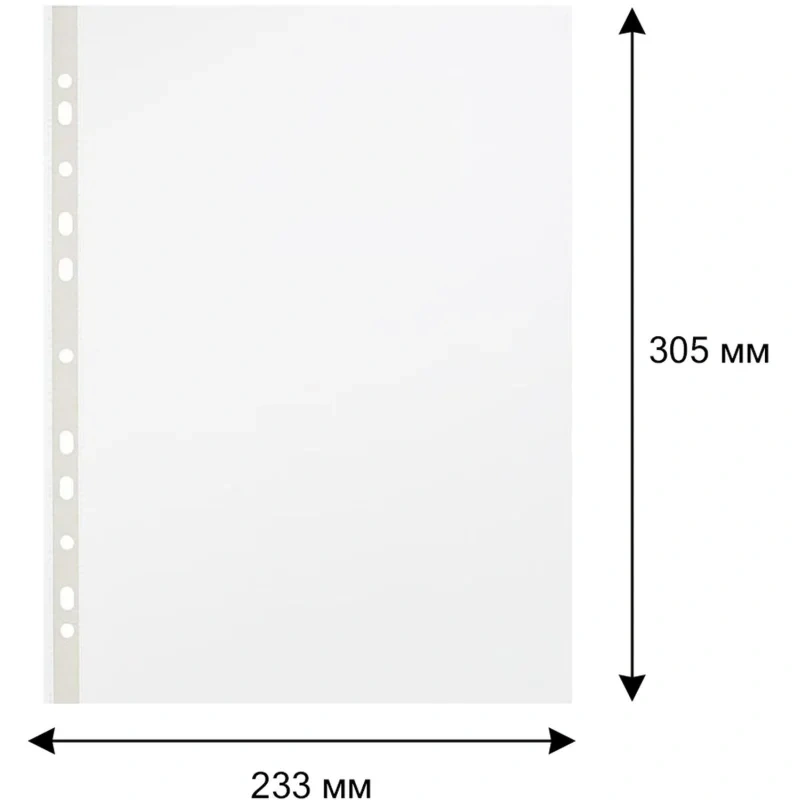 Файл-вкладыш формата А4 предназначен для хранения и защиты документов. Размер — 233×305 мм. Изготовлен из полипропиленовой пленки (толщина 35 мкм). Имеет бесцветную глянцевую поверхность. Боковая универсальная перфорация подходит для разных типов скоросшивателей. В упаковке содержится 100 файлов. Каждый файл-вкладыш вмещает до 50 листов стандартной плотности. В рамках обновления дизайна упаковки с сохранением всех потребительских характеристик товара, допускается поставка данной продукции в двух вариантах дизайна упаковки.