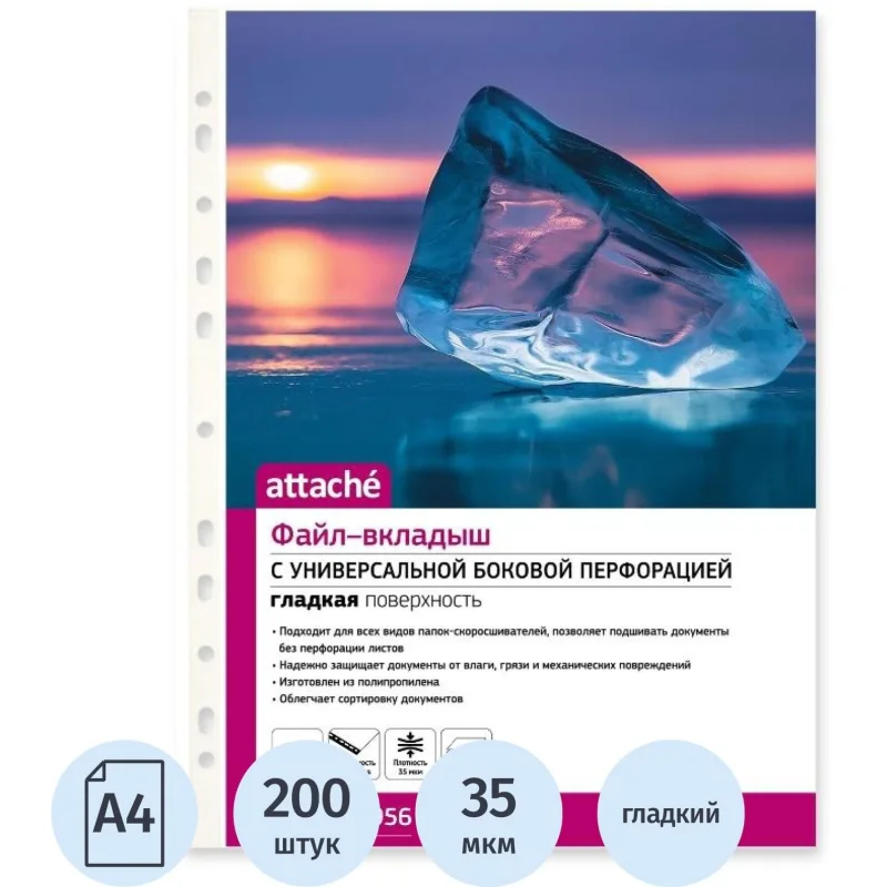 Файл-вкладыш А4 Attache 35 мкм, 200шт/уп