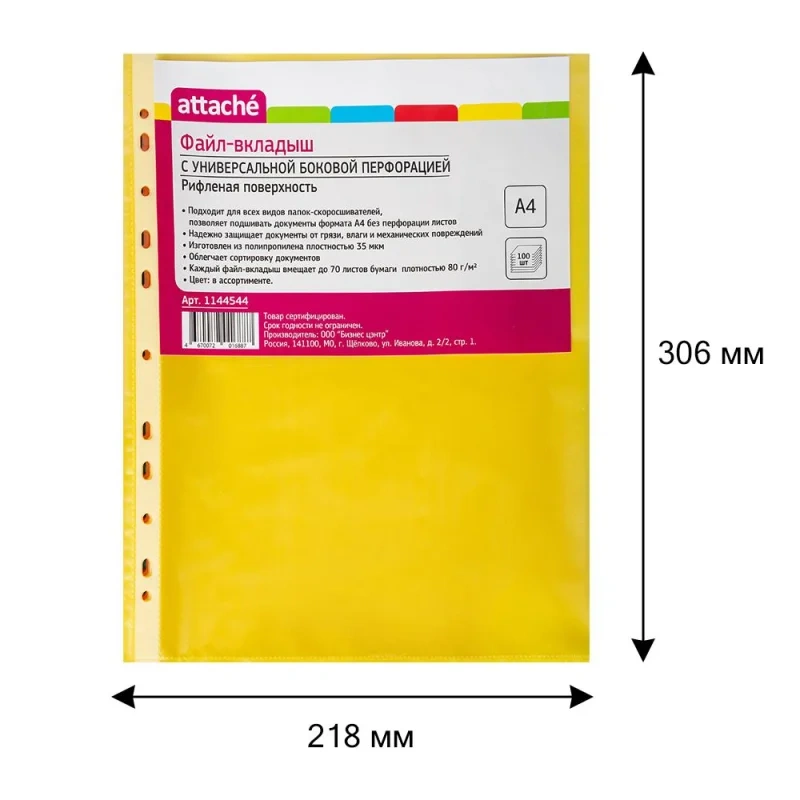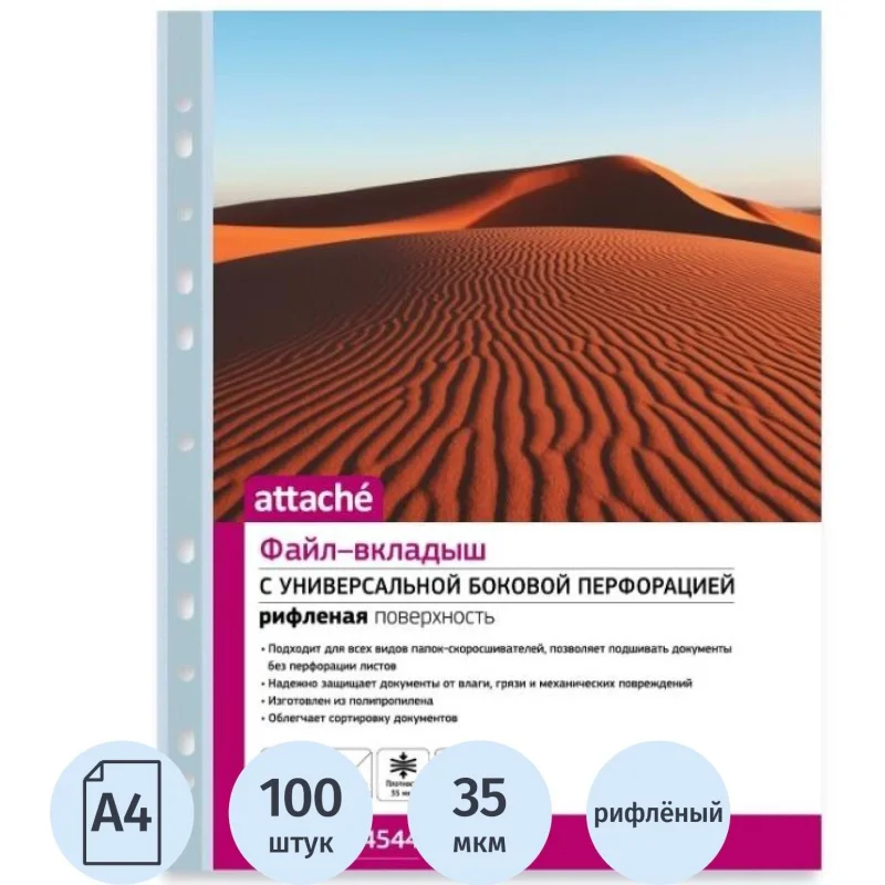 Файл-вкладыш А4 Attache ассорти, рифленый, 35мкм, 100шт/уп