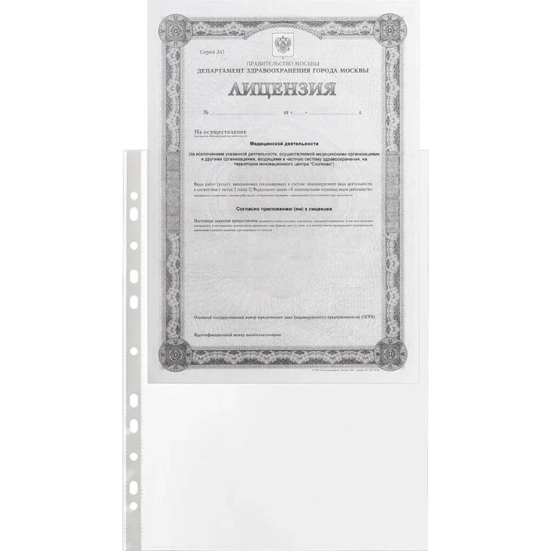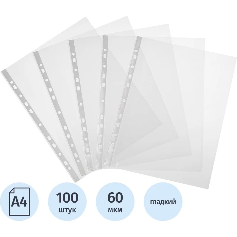 Файл-вкладыш А4 Attache Элементари прозрачный, гладкий, с перфорацией, 60мкм, 100шт/уп