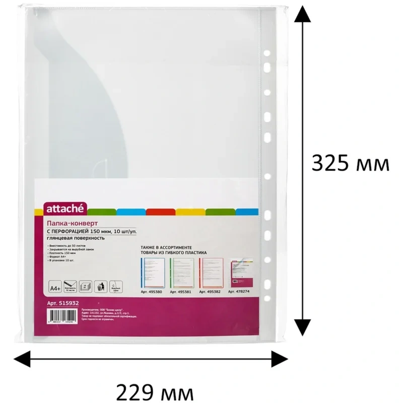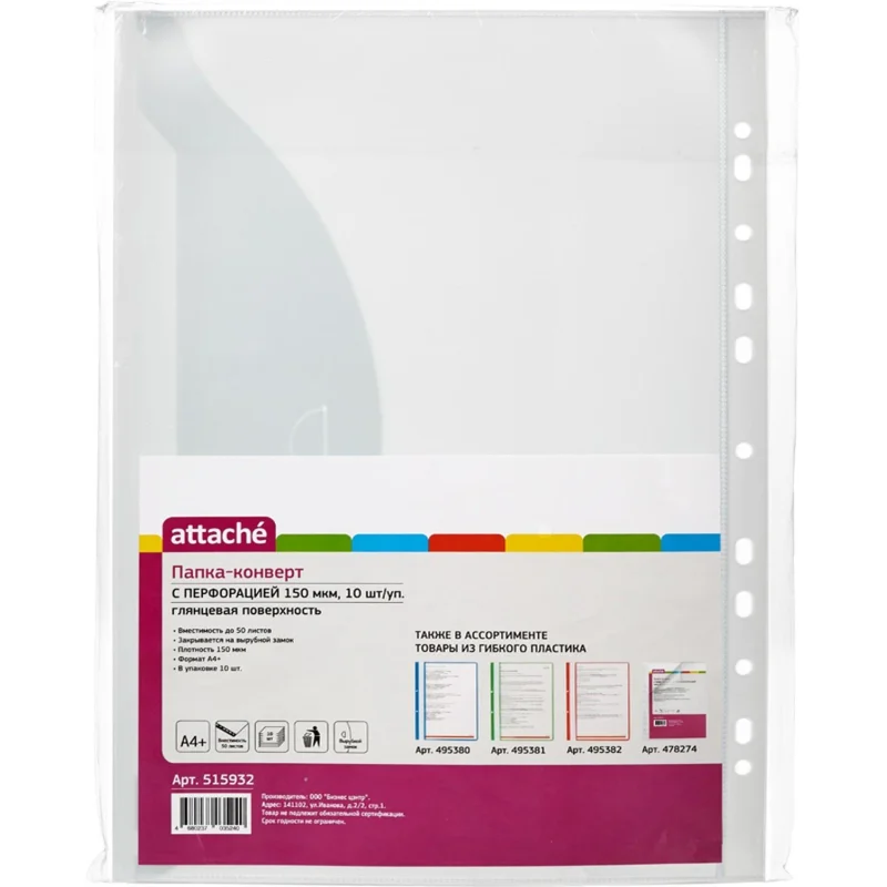 Файл-вкладыш А4+ Attache с перфорацией, 150 мкм, 10шт/уп