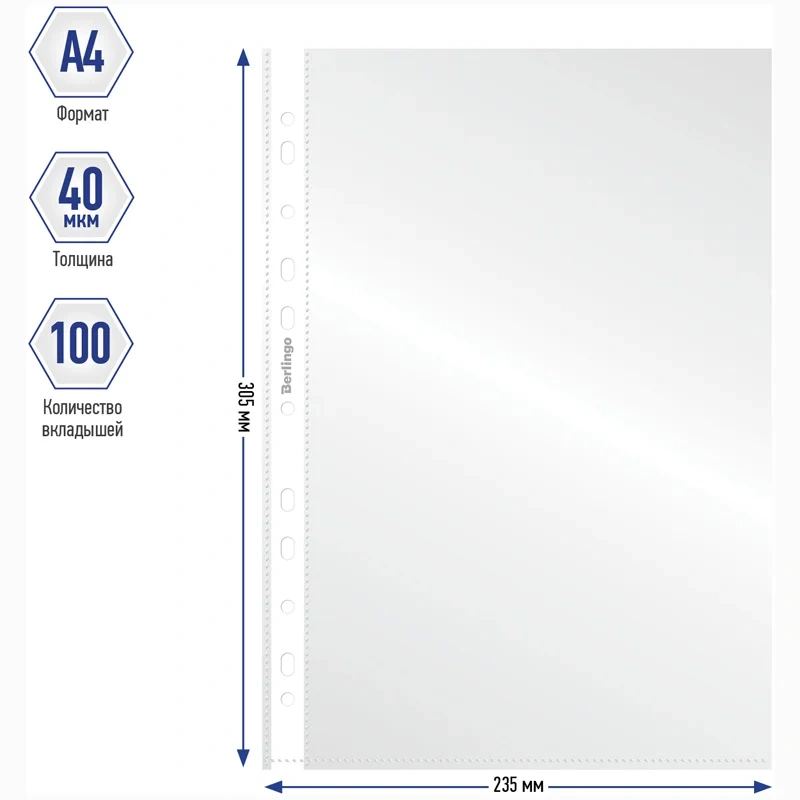Файл-вкладыш А4 Berlingo матовый, 40 мкм, 100шт/уп