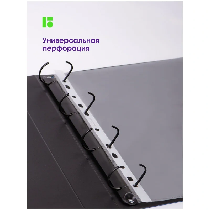 Антибликовая текстура «апельсиновая корка». Универсальная перфорация, подходит для любых папок. Яркий информационный лист-вкладыш А4 в каждой групповой упаковке и логотип на боковой ленте. Вместимость - 60 листов бумаги 80 г/м?.