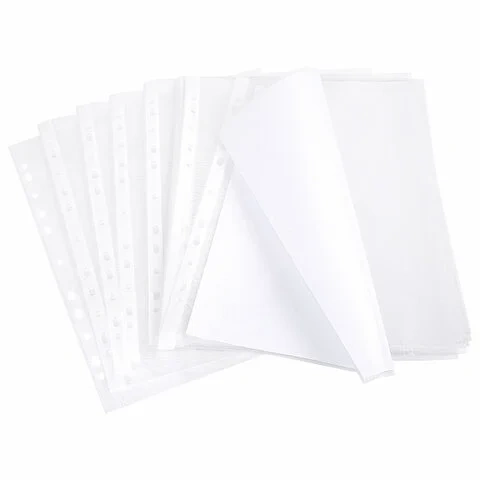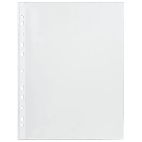 Перфопапки формата А4 с вертикальным размещением содержат универсальную перфорацию, а также имеют матовую поверхность и прочные швы. Толщина пленки - 30 мкм, что подходит для хранения документов - до 20 листов. В комплекте 100 шт.