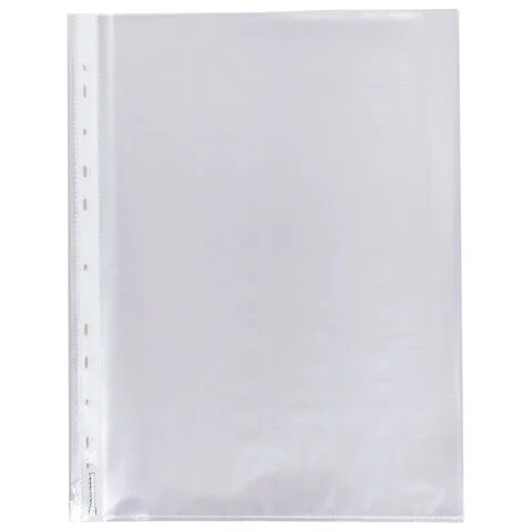 Перфопапки формата А4 с вертикальным размещением содержат универсальную перфорацию, а также имеют матовую поверхность и прочные швы. Толщина пленки - 45 мкм, что подходит для хранения документов - до 50 листов в 1 папке-файле. В комплекте 100 шт.